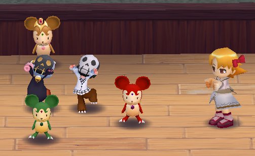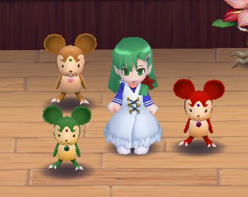 舞台の中心にはこんなふうにネズミが3匹控えていて、会場中に声が響き渡る【メガホン】置き場として活躍していたぞ。