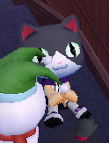 撮影中、一緒に舞台を見ていた黒猫の「フュンフ」が、ひたすら俺様が背負っているチュッパチャップスを舐めてきて、無くなるかと思ったぜ・・・