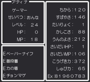 記事中に、ドラクエ風ステータスなるものを見かけたため、私もやってみました。